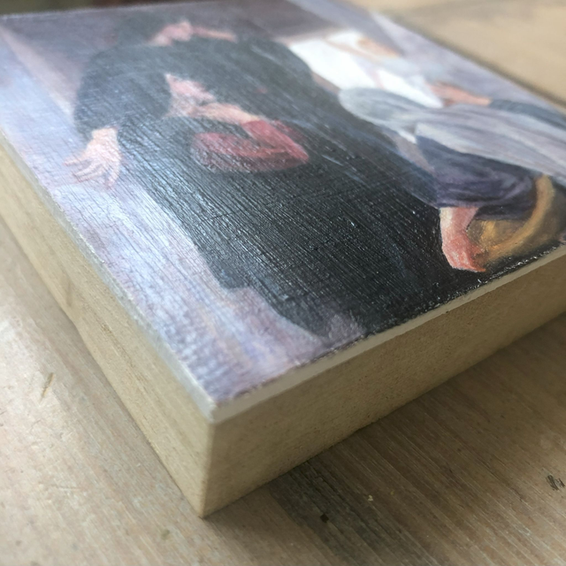 Quadrum - Peinture à l’huile sur bois, format 9,5 x 9,5 cm. Signature au recto et au verso.